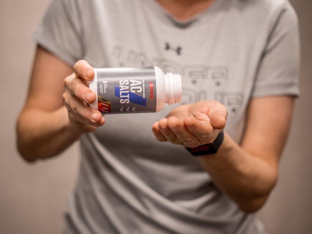 Unikátny bázický výživový doplnok Penco® AC Salts (Anti Cramps) obsahuje minerály, ktoré boli zostavené v takom pomere, aby spoločne s dostatočným prísunom tekutín čo najúčinnejšie zabránili vzniku svalových kŕčov, doplnili stratené minerály, obnovili acidobázickú rovnováhu, pomáhajú odstraňovať zo svalov kyselinu mliečnu a napomáhajú k udržaniu výkonnosti.