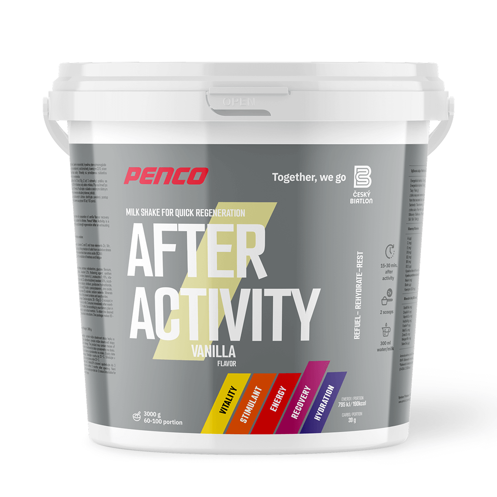 Penco® AFTER ACTIVITY je energetický regeneračný nápoj, obnovujúci po záťaži (tréningu, pretekoch či nadmernej fyzickej námahe) rovnováhu v organizme. Dopĺňa zásoby glykogénu vo svaloch a pečeni, a tým pomáha predchádzať potréningovým katabolickým procesom. Energiu dodávajú nielen jednoduché cukry (sacharóza, glukóza), ale aj vyššie molekulárne polysacharidy, aminokyseliny a proteíny. Bielkovinovou zložkou sú srvátkové proteíny s vysokou biologickou hodnotou, ktoré sa pomerne rýchlo resorbujú a pomáhajú prepnúť katabolický proces na anabolický.